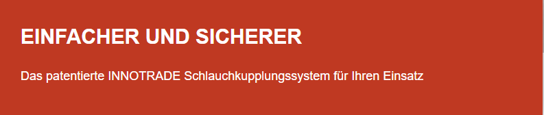 Bei INNOTRADE weiß man, worauf es bei Kupplungssystemen im Feuerwehreinsatz ankommt. Vor über 20 Jahren hat INNOTRADE die Anforderungen der Feuerwehrleute an Kupplungssystemen erkannt und ein komplett neuartiges System entwickelt und patentiert, mit dem der herkömmliche Drahteinband bei Schläuchen vollständig ersetzt werden kann.